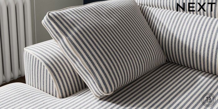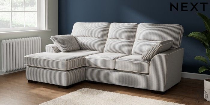 7.3.1 Buy Stamford Highback Small Sofa Chaise - Left Hand Chenille Stripe Slate Blue Large Square Angle - Dark from the Next UK online shop Click here to use our accessible website
