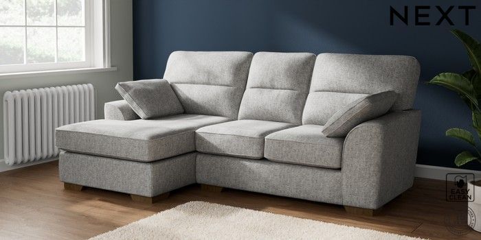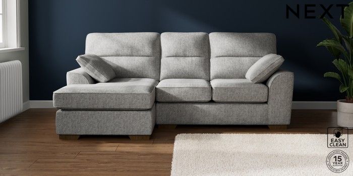 7.2.10 Buy Stamford Highback Small Sofa Chaise - Left Hand Chunky Boucle Easy Clean Light Grey Large Square Angle - Mid from the Next UK online shop Click here to use our accessible website