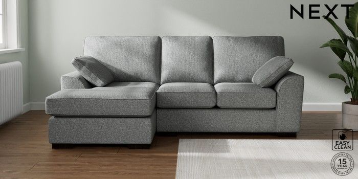 7.2.10 Buy Stamford Highback Small Sofa Chaise - Left Hand Chunky Boucle Easy Clean Mid Grey Large Square Angle - Dark from the Next UK online shop Click here to use our accessible website