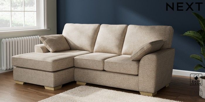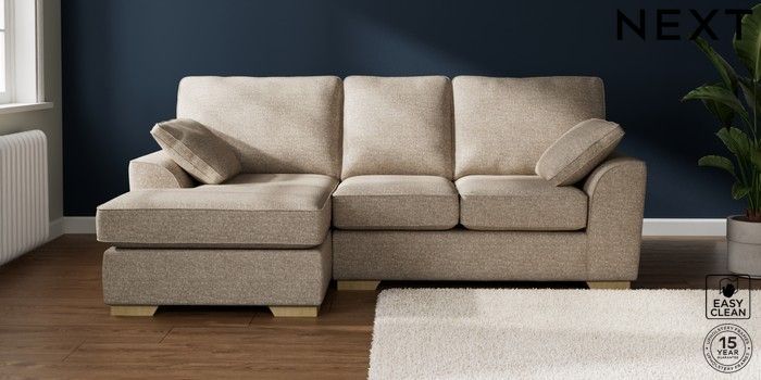 7.2.10 Buy Stamford Highback Small Sofa Chaise - Left Hand Chunky Boucle Easy Clean Mid Natural Large Square Angle - Light from the Next UK online shop Click here to use our accessible website