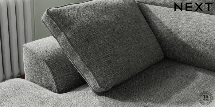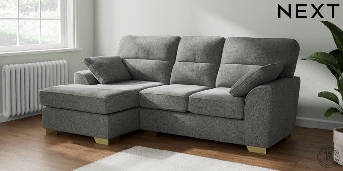 7.2.10 Buy Stamford Highback Small Sofa Chaise - Left Hand Chunky Chenille Dark Grey Large Square Angle - Brushed Brass from the Next UK online shop Click here to use our accessible website