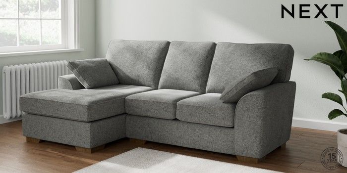 6.12.1 Buy Stamford Highback Small Sofa Chaise - Left Hand Chunky Chenille Dark Grey Large Square Angle - Mid from the Next UK online shop Click here to use our accessible website