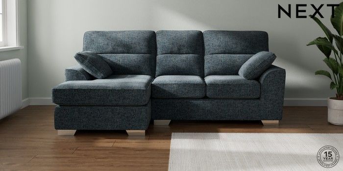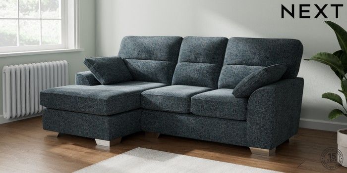 7.2.10 Buy Stamford Highback Small Sofa Chaise - Left Hand Chunky Chenille Dark Navy Blue Large Square Angle - Chrome Metal from the Next UK online shop Click here to use our accessible website