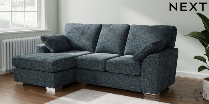 6.12.1 Buy Stamford Highback Small Sofa Chaise - Left Hand Chunky Chenille Dark Navy Blue Large Square Angle - Chrome Metal from the Next UK online shop Click here to use our accessible website