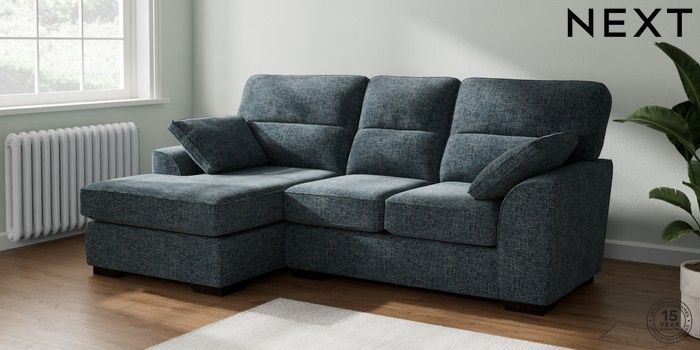 7.2.10 Buy Stamford Highback Small Sofa Chaise - Left Hand Chunky Chenille Dark Navy Blue Large Square Angle - Dark from the Next UK online shop Click here to use our accessible website