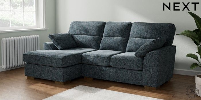 7.2.10 Buy Stamford Highback Small Sofa Chaise - Left Hand Chunky Chenille Dark Navy Blue Large Square Angle - Mid from the Next UK online shop Click here to use our accessible website