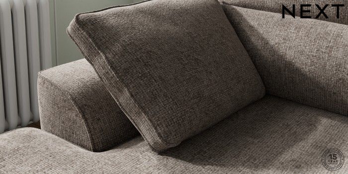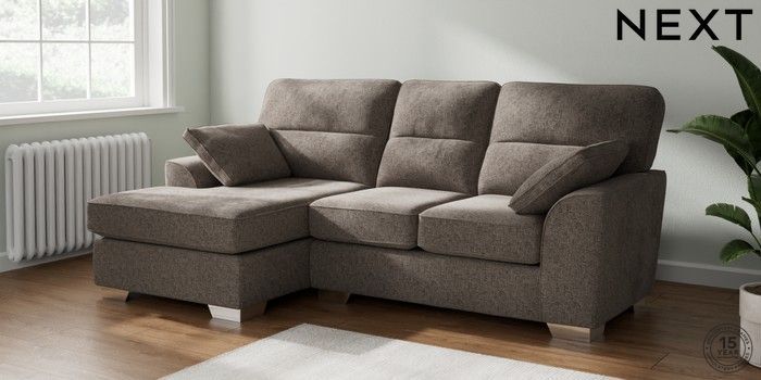 7.2.10 Buy Stamford Highback Small Sofa Chaise - Left Hand Chunky Chenille Mink Brown Large Square Angle - Chrome Metal from the Next UK online shop Click here to use our accessible website