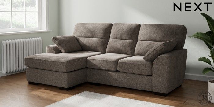 7.2.10 Buy Stamford Highback Small Sofa Chaise - Left Hand Chunky Chenille Mink Brown Large Square Angle - Dark from the Next UK online shop Click here to use our accessible website