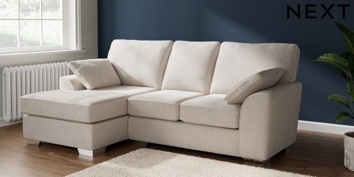 6.12.1 Buy Stamford Highback Small Sofa Chaise - Left Hand Chunky Chenille Oyster Large Square Angle - Chrome Metal from the Next UK online shop Click here to use our accessible website