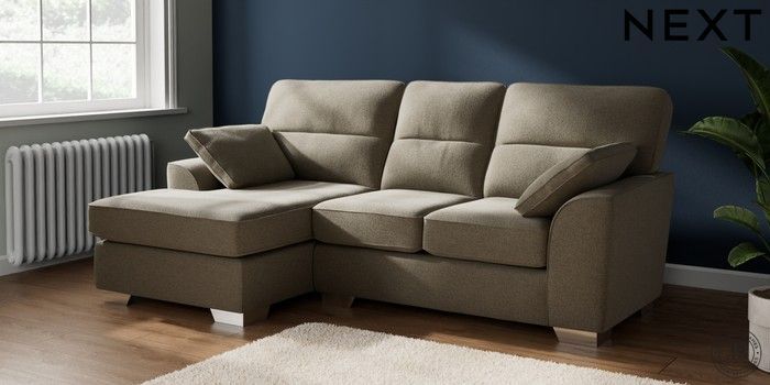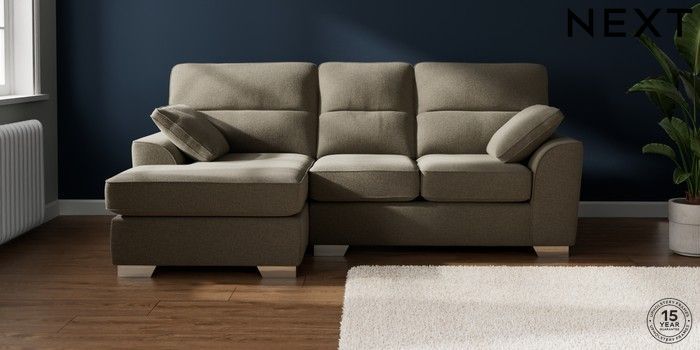 7.2.10 Buy Stamford Highback Small Sofa Chaise - Left Hand Chunky Marl Light Olive Green Large Square Angle - Chrome Metal from the Next UK online shop Click here to use our accessible website
