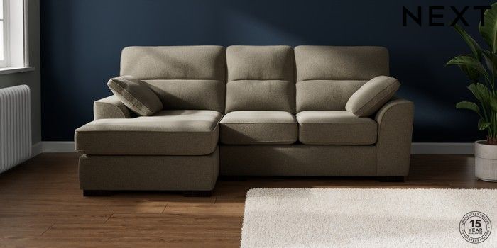 7.2.10 Buy Stamford Highback Small Sofa Chaise - Left Hand Chunky Marl Light Olive Green Large Square Angle - Dark from the Next UK online shop Click here to use our accessible website