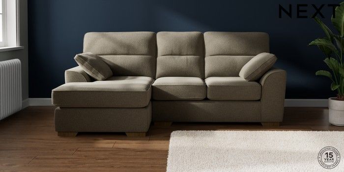 7.2.10 Buy Stamford Highback Small Sofa Chaise - Left Hand Chunky Marl Light Olive Green Large Square Angle - Mid from the Next UK online shop Click here to use our accessible website