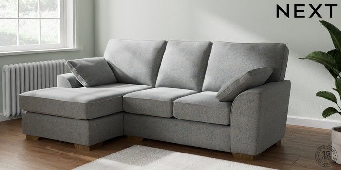 6.12.13 Buy Stamford Highback Small Sofa Chaise - Left Hand Chunky Marl Mid Grey Large Square Angle - Mid from the Next UK online shop Click here to use our accessible website