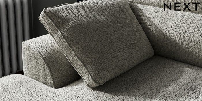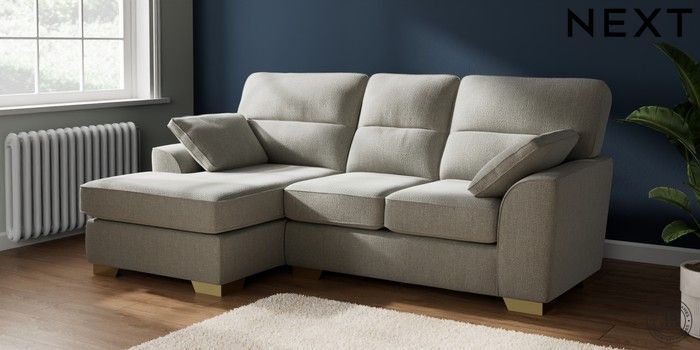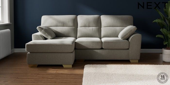 7.2.10 Buy Stamford Highback Small Sofa Chaise - Left Hand Chunky Texture Dove Large Square Angle - Brushed Brass from the Next UK online shop Click here to use our accessible website