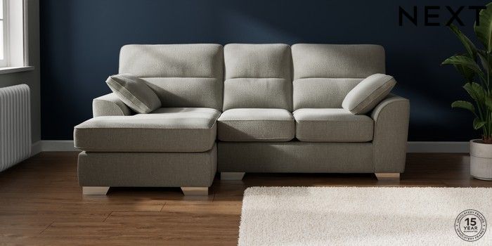 7.2.10 Buy Stamford Highback Small Sofa Chaise - Left Hand Chunky Texture Dove Large Square Angle - Chrome Metal from the Next UK online shop Click here to use our accessible website