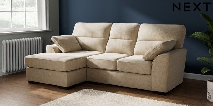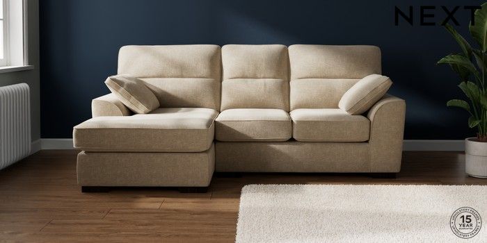 7.2.10 Buy Stamford Highback Small Sofa Chaise - Left Hand Chunky Weave Cream Large Square Angle - Dark from the Next UK online shop Click here to use our accessible website