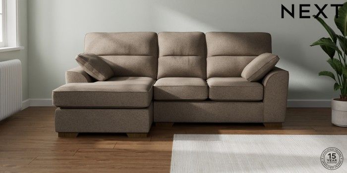 7.2.10 Buy Stamford Highback Small Sofa Chaise - Left Hand Chunky Weave Dark Natural Large Square Angle - Mid from the Next UK online shop Click here to use our accessible website