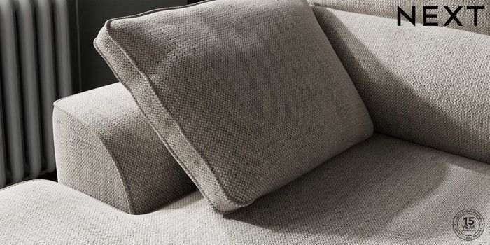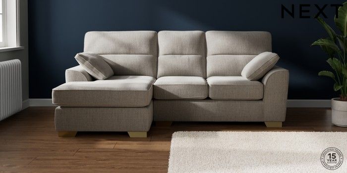 7.2.10 Buy Stamford Highback Small Sofa Chaise - Left Hand Chunky Weave Dove Grey Large Square Angle - Brushed Brass from the Next UK online shop Click here to use our accessible website