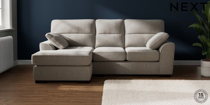 7.2.10 Buy Stamford Highback Small Sofa Chaise - Left Hand Chunky Weave Dove Grey Large Square Angle - Dark from the Next UK online shop Click here to use our accessible website