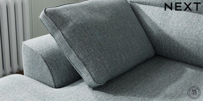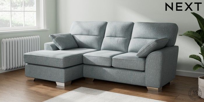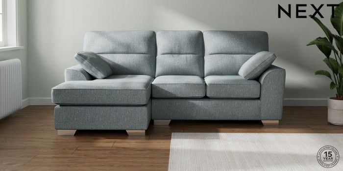 7.2.10 Buy Stamford Highback Small Sofa Chaise - Left Hand Chunky Weave Mid Blue Large Square Angle - Chrome Metal from the Next UK online shop Click here to use our accessible website