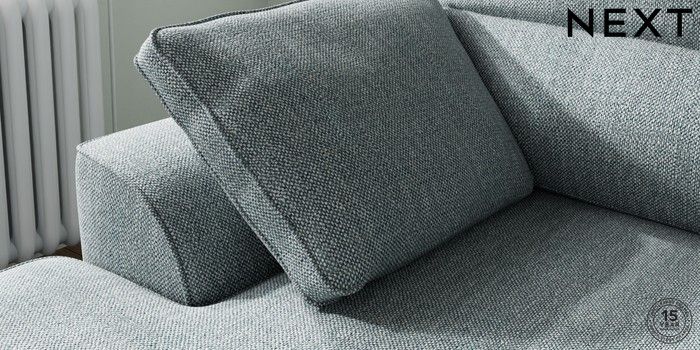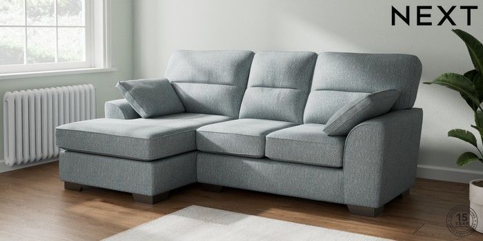 7.2.10 Buy Stamford Highback Small Sofa Chaise - Left Hand Chunky Weave Mid Blue Large Square Angle - Gunmetal from the Next UK online shop Click here to use our accessible website