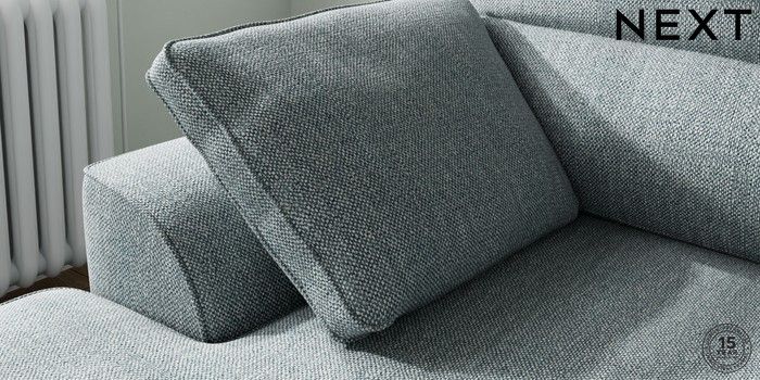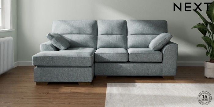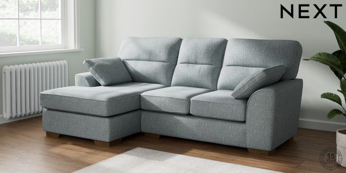 7.2.10 Buy Stamford Highback Small Sofa Chaise - Left Hand Chunky Weave Mid Blue Large Square Angle - Mid from the Next UK online shop Click here to use our accessible website
