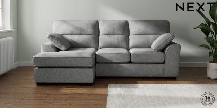 7.2.10 Buy Stamford Highback Small Sofa Chaise - Left Hand Chunky Weave Mid Grey Large Square Angle - Dark from the Next UK online shop Click here to use our accessible website