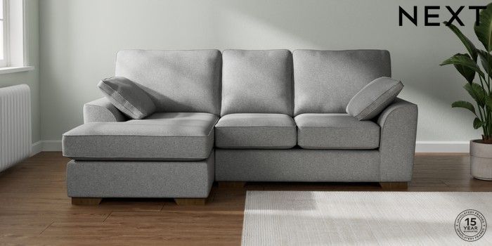 7.2.10 Buy Stamford Highback Small Sofa Chaise - Left Hand Chunky Weave Mid Grey Large Square Angle - Mid from the Next UK online shop Click here to use our accessible website