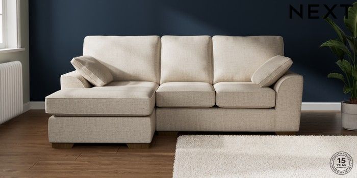 7.2.10 Buy Stamford Highback Small Sofa Chaise - Left Hand Chunky Weave Mid Natural Large Square Angle - Mid from the Next UK online shop Click here to use our accessible website