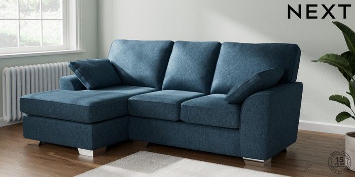 6.12.1 Buy Stamford Highback Small Sofa Chaise - Left Hand Cotswold Chenille Dark Blue Large Square Angle - Chrome Metal from the Next UK online shop Click here to use our accessible website