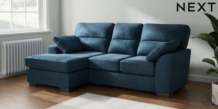 7.2.10 Buy Stamford Highback Small Sofa Chaise - Left Hand Cotswold Chenille Dark Blue Large Square Angle - Gunmetal from the Next UK online shop Click here to use our accessible website