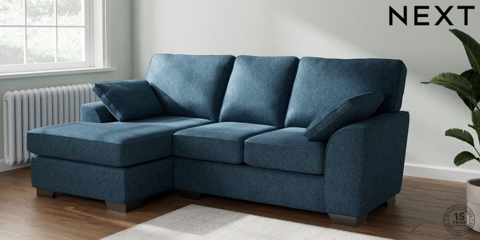 6.12.1 Buy Stamford Highback Small Sofa Chaise - Left Hand Cotswold Chenille Dark Blue Large Square Angle - Gunmetal from the Next UK online shop Click here to use our accessible website