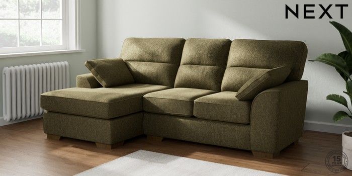 7.2.10 Buy Stamford Highback Small Sofa Chaise - Left Hand Cotswold Chenille Dark Green Large Square Angle - Mid from the Next UK online shop Click here to use our accessible website