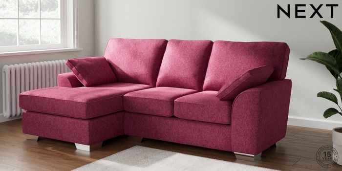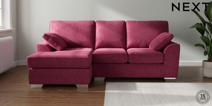 7.2.10 Buy Stamford Highback Small Sofa Chaise - Left Hand Cotswold Chenille Dark Raspberry Pink Large Square Angle - Chrome Metal from the Next UK online shop Click here to use our accessible website