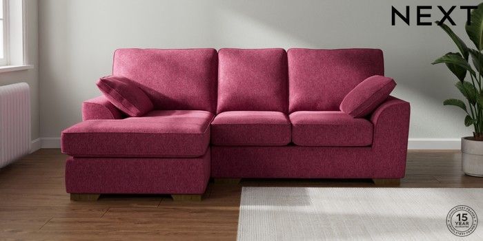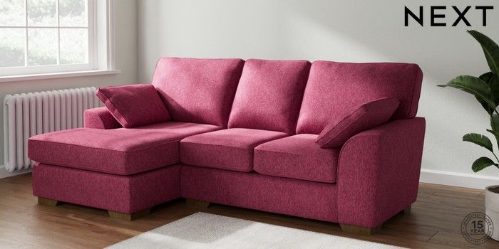 7.2.10 Buy Stamford Highback Small Sofa Chaise - Left Hand Cotswold Chenille Dark Raspberry Pink Large Square Angle - Mid from the Next UK online shop Click here to use our accessible website