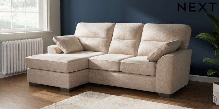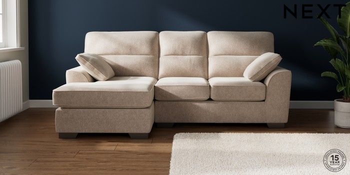 7.2.10 Buy Stamford Highback Small Sofa Chaise - Left Hand Cotswold Chenille Light Natural Large Square Angle - Gunmetal from the Next UK online shop Click here to use our accessible website