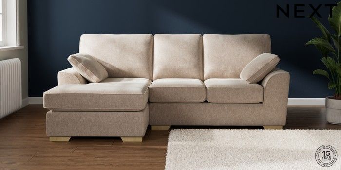 7.2.10 Buy Stamford Highback Small Sofa Chaise - Left Hand Cotswold Chenille Light Natural Large Square Angle - Light from the Next UK online shop Click here to use our accessible website