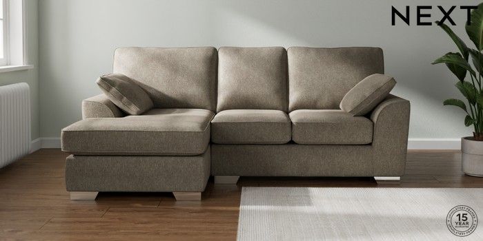 7.2.6 Buy Stamford Highback Small Sofa Chaise - Left Hand Cotswold Chenille Mid Mink Brown Large Square Angle - Chrome Metal from the Next UK online shop Click here to use our accessible website