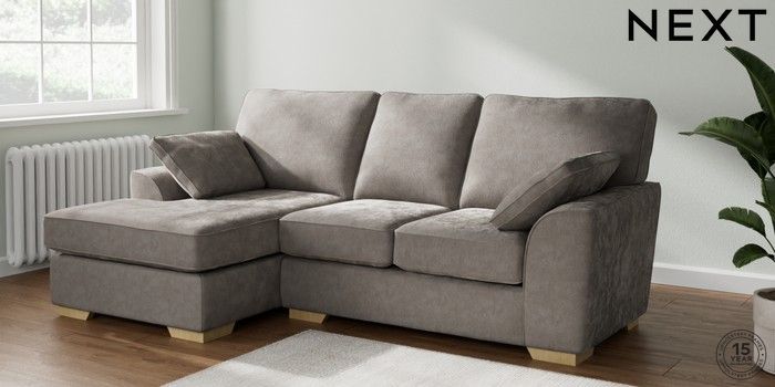 6.12.1 Buy Stamford Highback Small Sofa Chaise - Left Hand Distressed Velour French Grey Large Square Angle - Light from the Next UK online shop Click here to use our accessible website