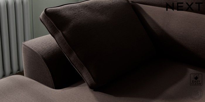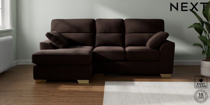 7.2.10 Buy Stamford Highback Small Sofa Chaise - Left Hand Fine Chenille Easy Clean Chocolate Brown Large Square Angle - Brushed Brass from the Next UK online shop Click here to use our accessible website