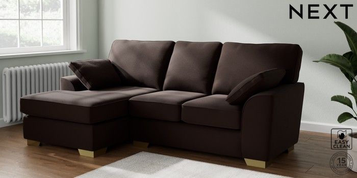6.12.1 Buy Stamford Highback Small Sofa Chaise - Left Hand Fine Chenille Easy Clean Chocolate Brown Large Square Angle - Brushed Brass from the Next UK online shop Click here to use our accessible website