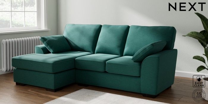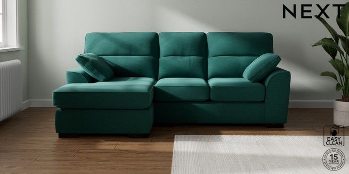 7.2.10 Buy Stamford Highback Small Sofa Chaise - Left Hand Fine Chenille Easy Clean Dark Juniper Green Large Square Angle - Dark from the Next UK online shop Click here to use our accessible website