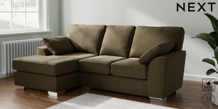 6.12.1 Buy Stamford Highback Small Sofa Chaise - Left Hand Fine Chenille Easy Clean Dark Moss Green Large Square Angle - Chrome Metal from the Next UK online shop Click here to use our accessible website