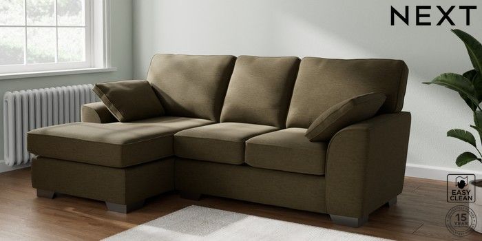 6.12.1 Buy Stamford Highback Small Sofa Chaise - Left Hand Fine Chenille Easy Clean Dark Moss Green Large Square Angle - Gunmetal from the Next UK online shop Click here to use our accessible website