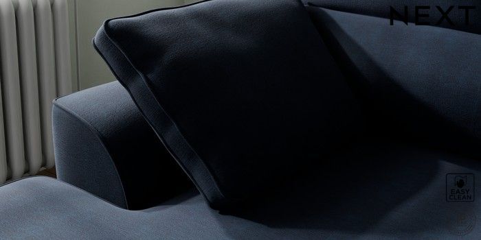 7.2.10 Buy Stamford Highback Small Sofa Chaise - Left Hand Fine Chenille Easy Clean Dark Navy Blue Large Square Angle - Brushed Brass from the Next UK online shop Click here to use our accessible website