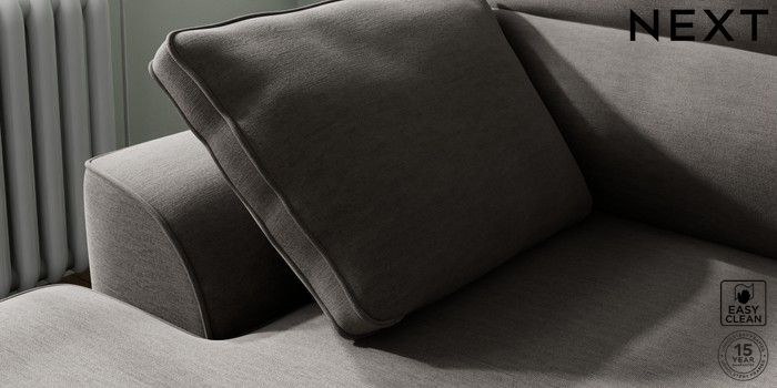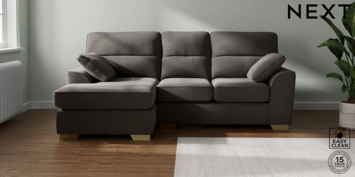 7.2.10 Buy Stamford Highback Small Sofa Chaise - Left Hand Fine Chenille Easy Clean Dark Smoke Grey Large Square Angle - Brushed Brass from the Next UK online shop Click here to use our accessible website