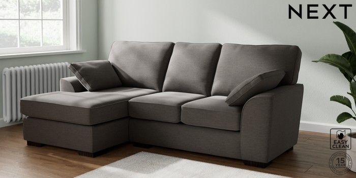 6.12.1 Buy Stamford Highback Small Sofa Chaise - Left Hand Fine Chenille Easy Clean Dark Smoke Grey Large Square Angle - Dark from the Next UK online shop Click here to use our accessible website