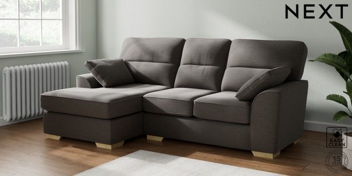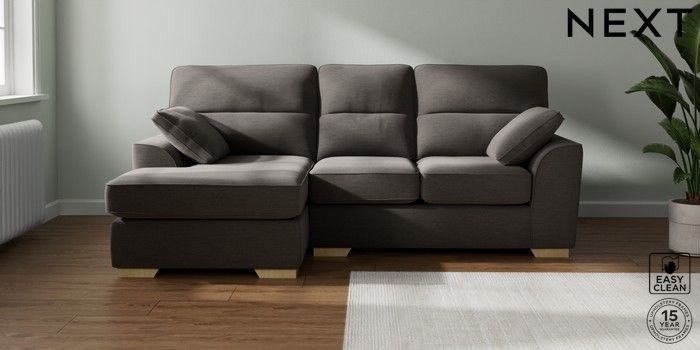 7.2.10 Buy Stamford Highback Small Sofa Chaise - Left Hand Fine Chenille Easy Clean Dark Smoke Grey Large Square Angle - Light from the Next UK online shop Click here to use our accessible website