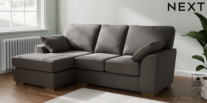6.12.1 Buy Stamford Highback Small Sofa Chaise - Left Hand Fine Chenille Easy Clean Dark Smoke Grey Large Square Angle - Mid from the Next UK online shop Click here to use our accessible website