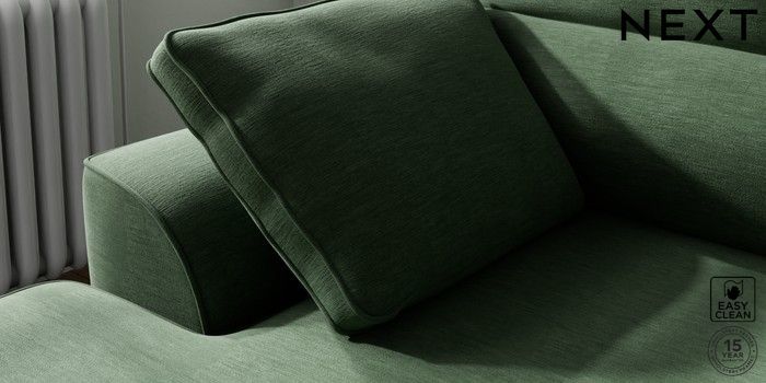 7.2.10 Buy Stamford Highback Small Sofa Chaise - Left Hand Fine Chenille Easy Clean Mid Khaki Green Large Square Angle - Brushed Brass from the Next UK online shop Click here to use our accessible website